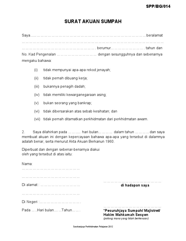 Contoh Surat Akuan Sumpah Berhutang Surat Pengunduran Diri Surat Ejaan