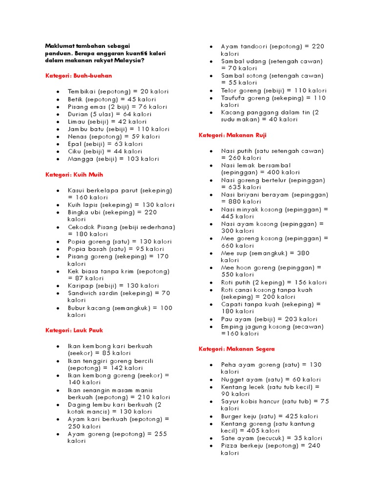 . Lihat nota Berjalan kaki selama 33 minit. Jadual Senarai Kalori Makanan Popular Rakyat Malaysia. Untuk episod kali ini kami akan menunjukkan bagaiman kami mencuba membakar kalori dari sebiji karipap kentang dgn nilai kalori sekitar 120 150 kcalKita c.